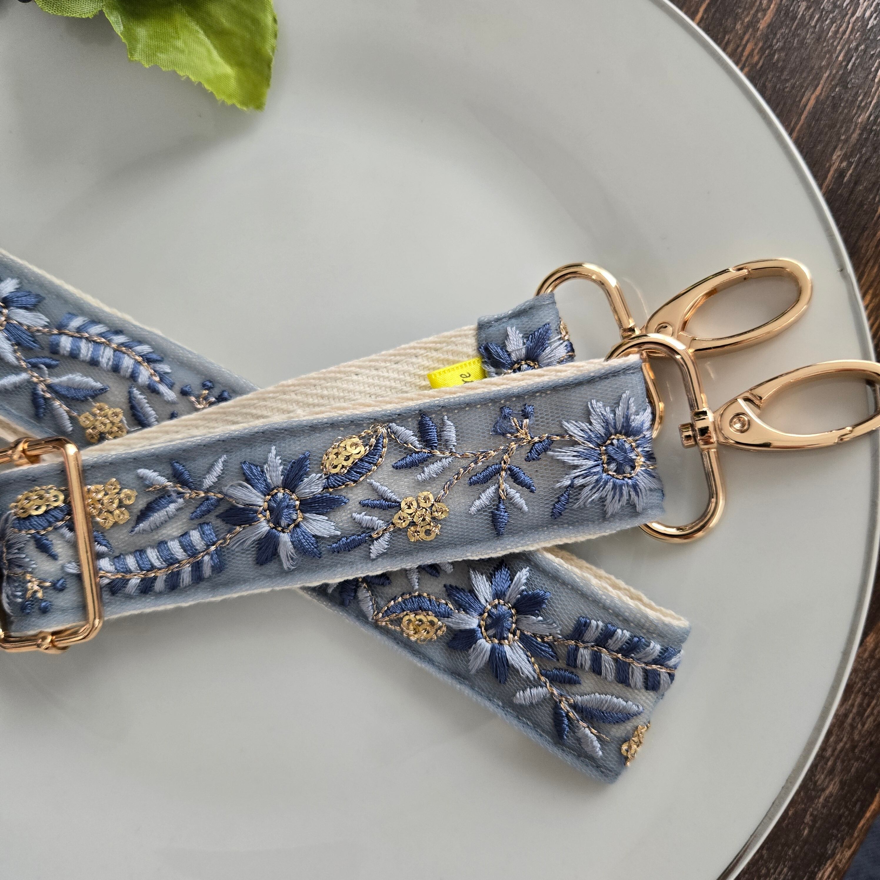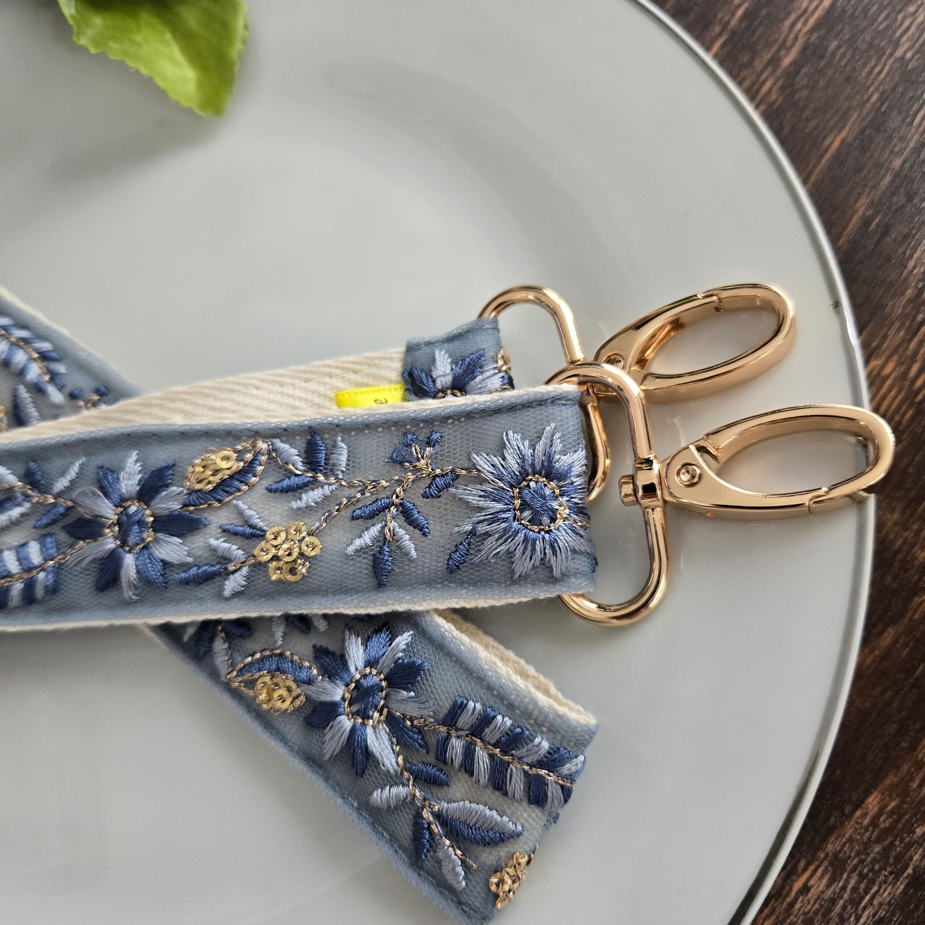ブルーを2色使い綺麗に刺繍されたリボンです(^.^)
