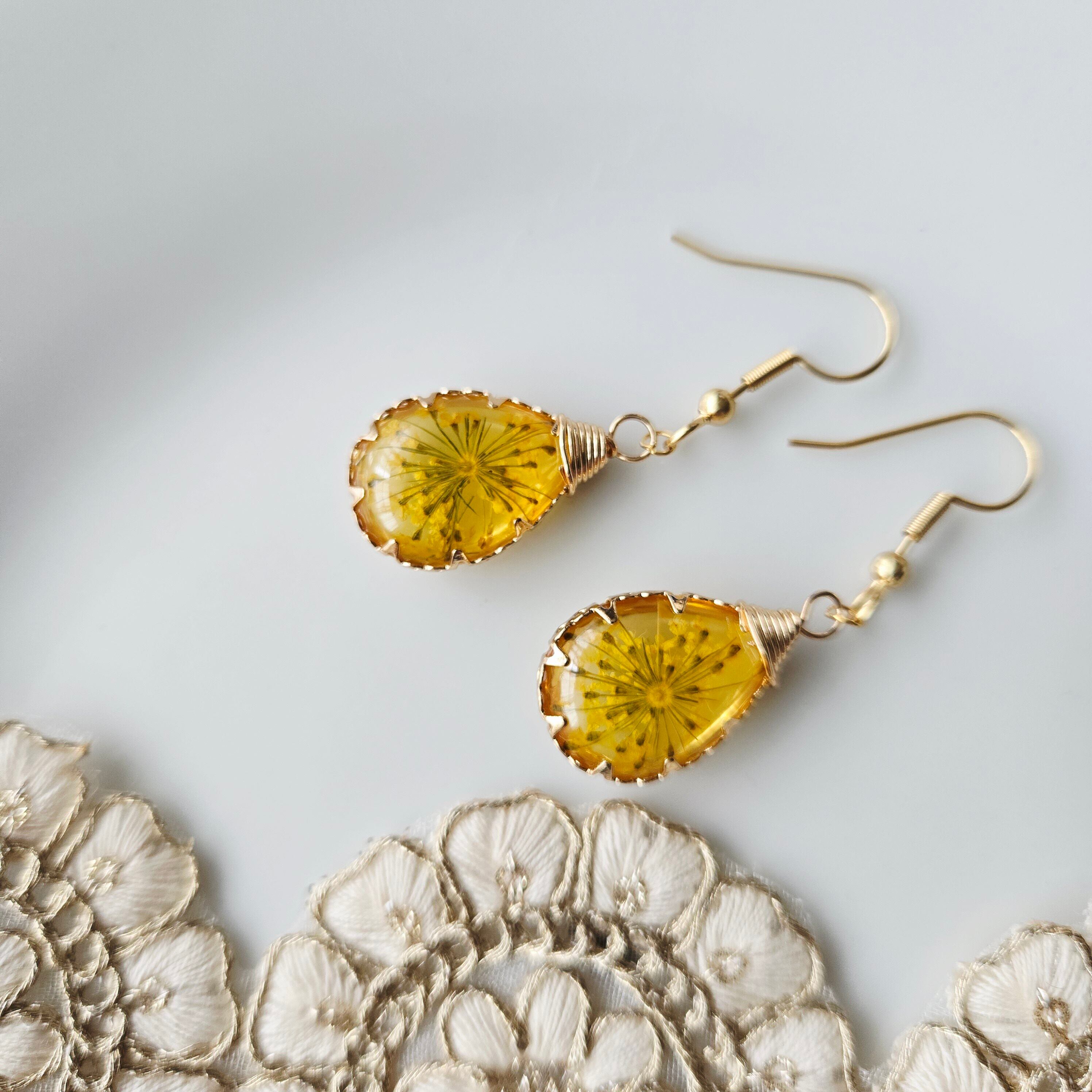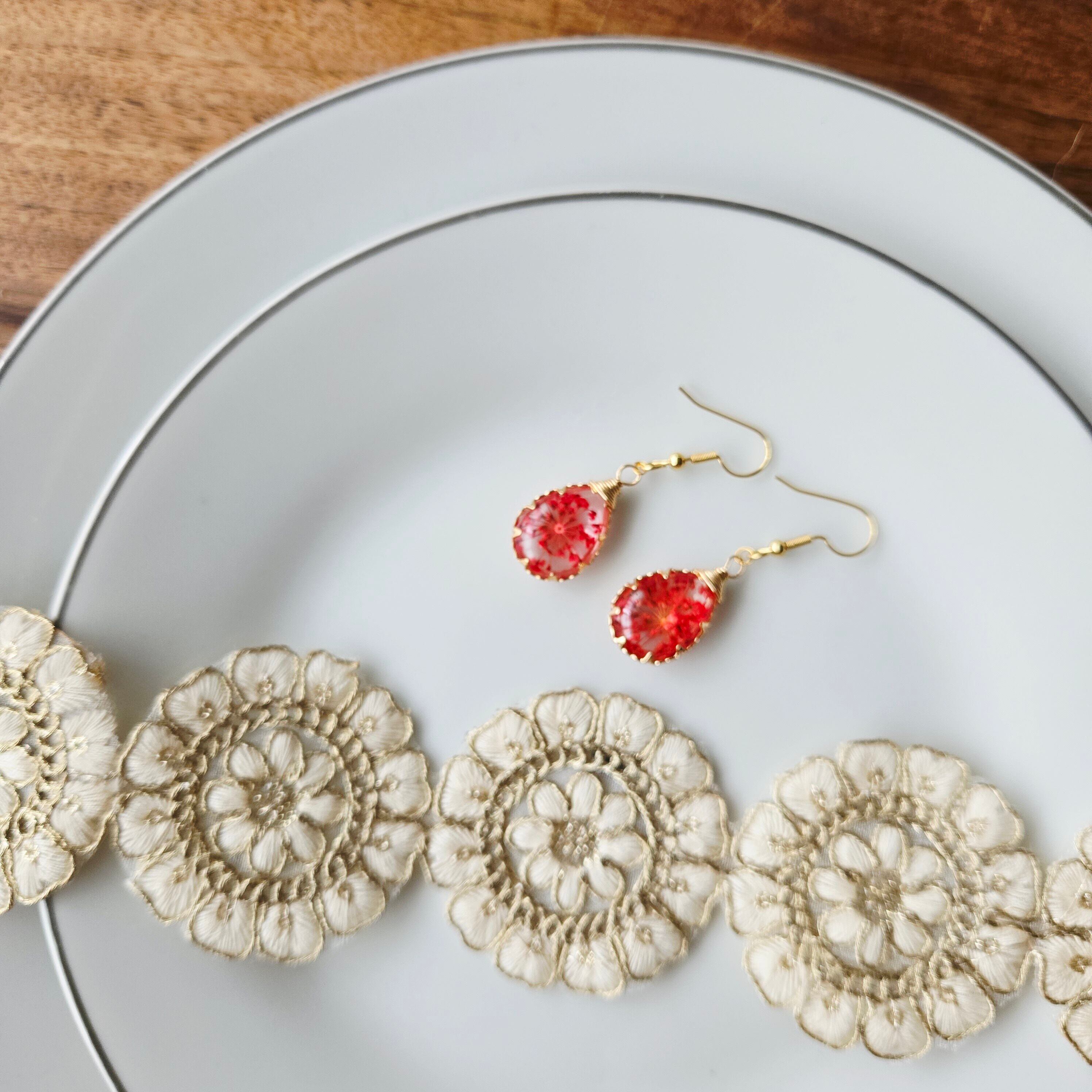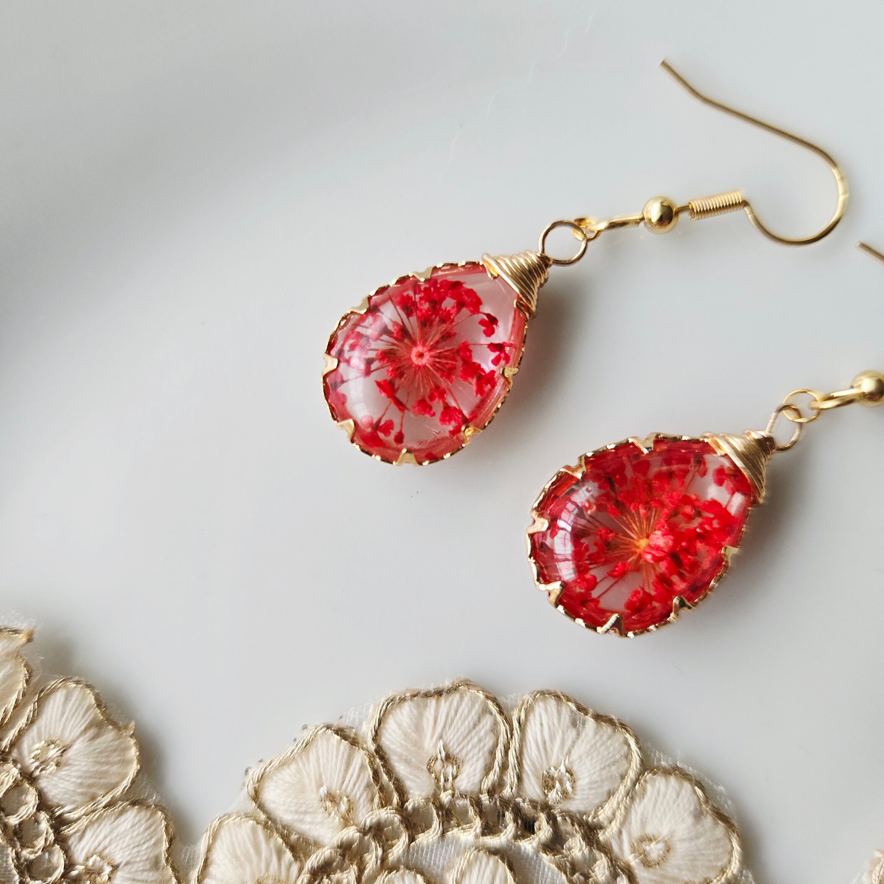 ガラスの中に本物のフラワーを入れた揺れるピアスです.:*:・'°