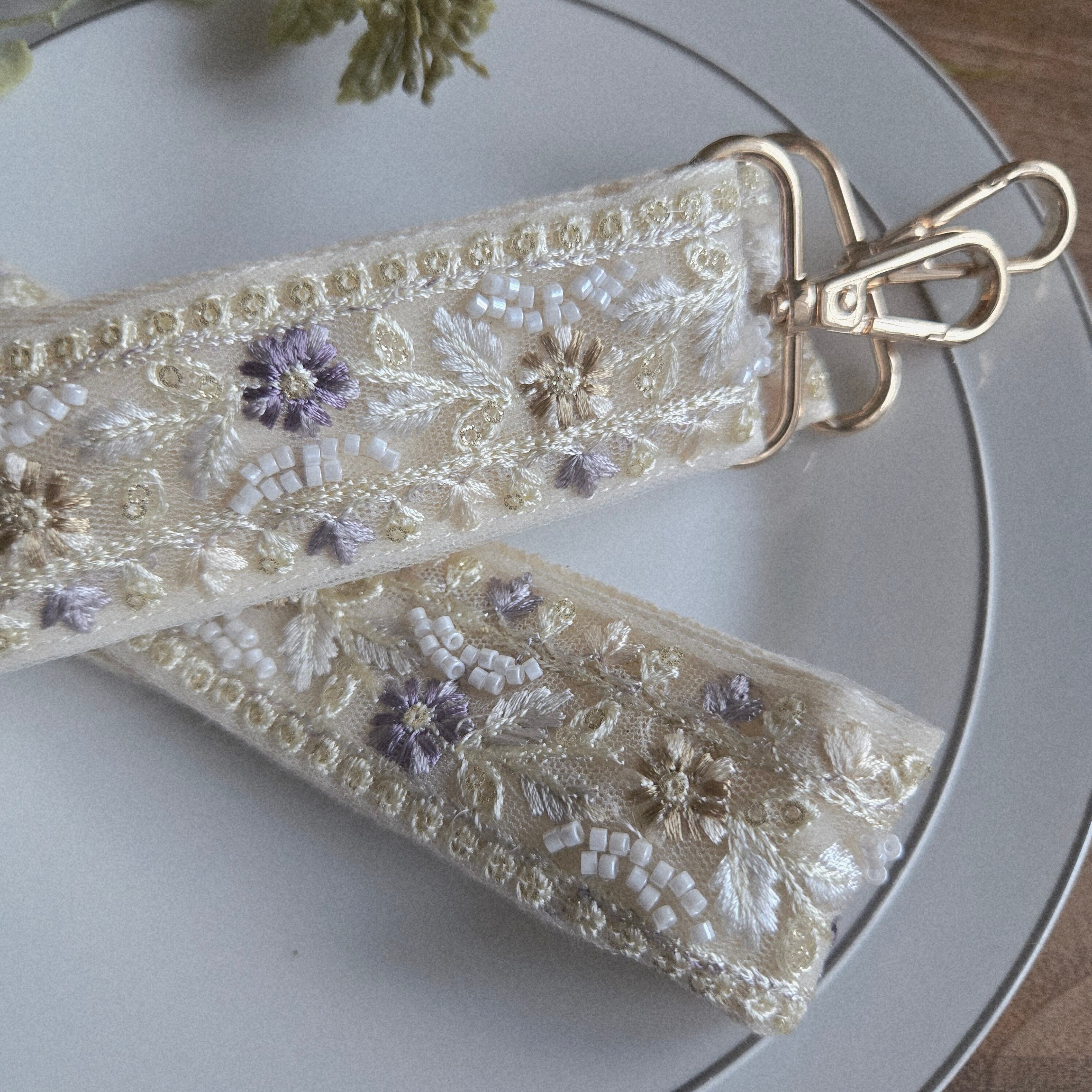 アイボリーリボンに丁寧にビーズが縫い付けられています