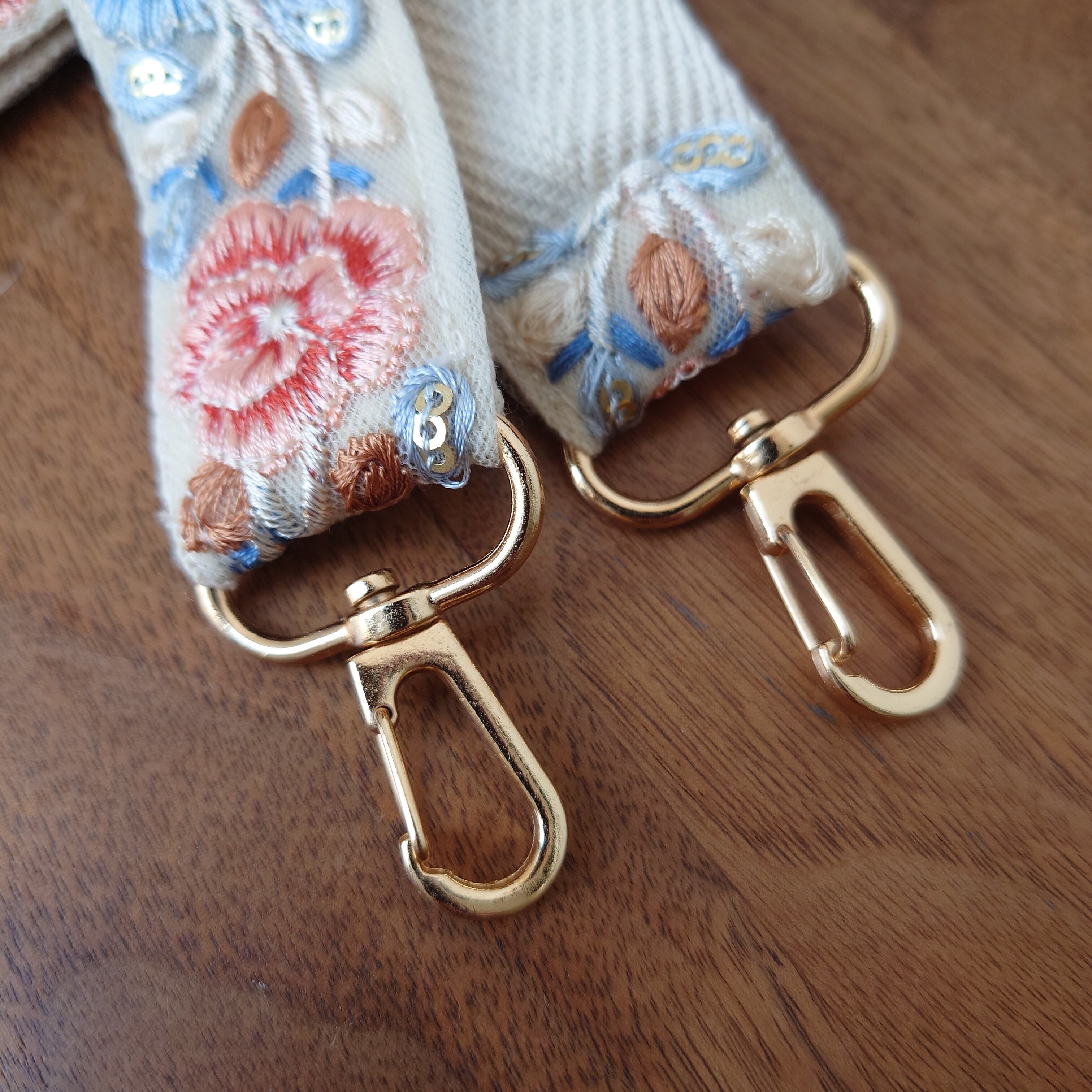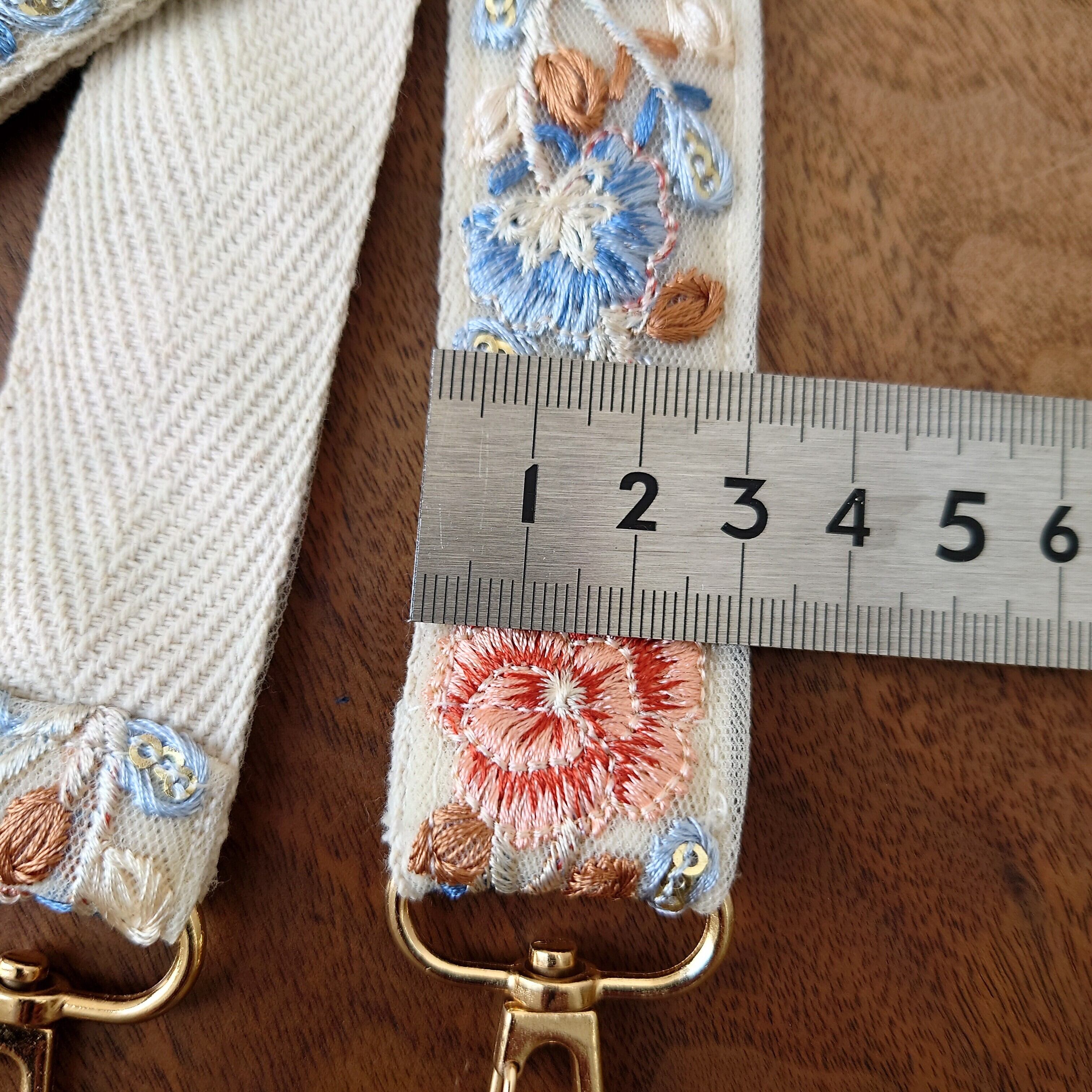 手作りでこだわりを持って製作されたショルダーストラップは、それぞれが丁寧に刺繍されています。丈夫で耐久性のある製品です。