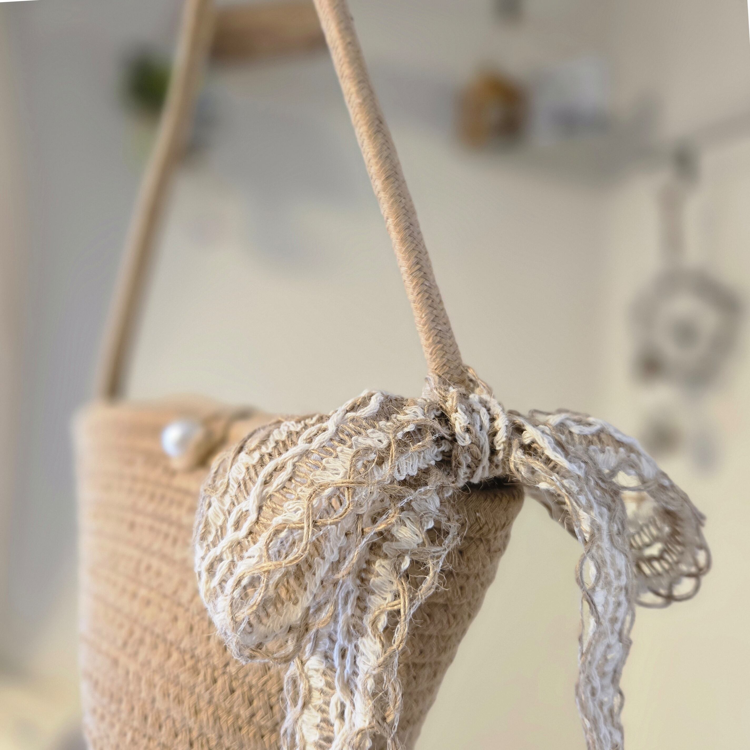 麻リボンにナチュラルカラーのショルダーバックを合わせてみました♡