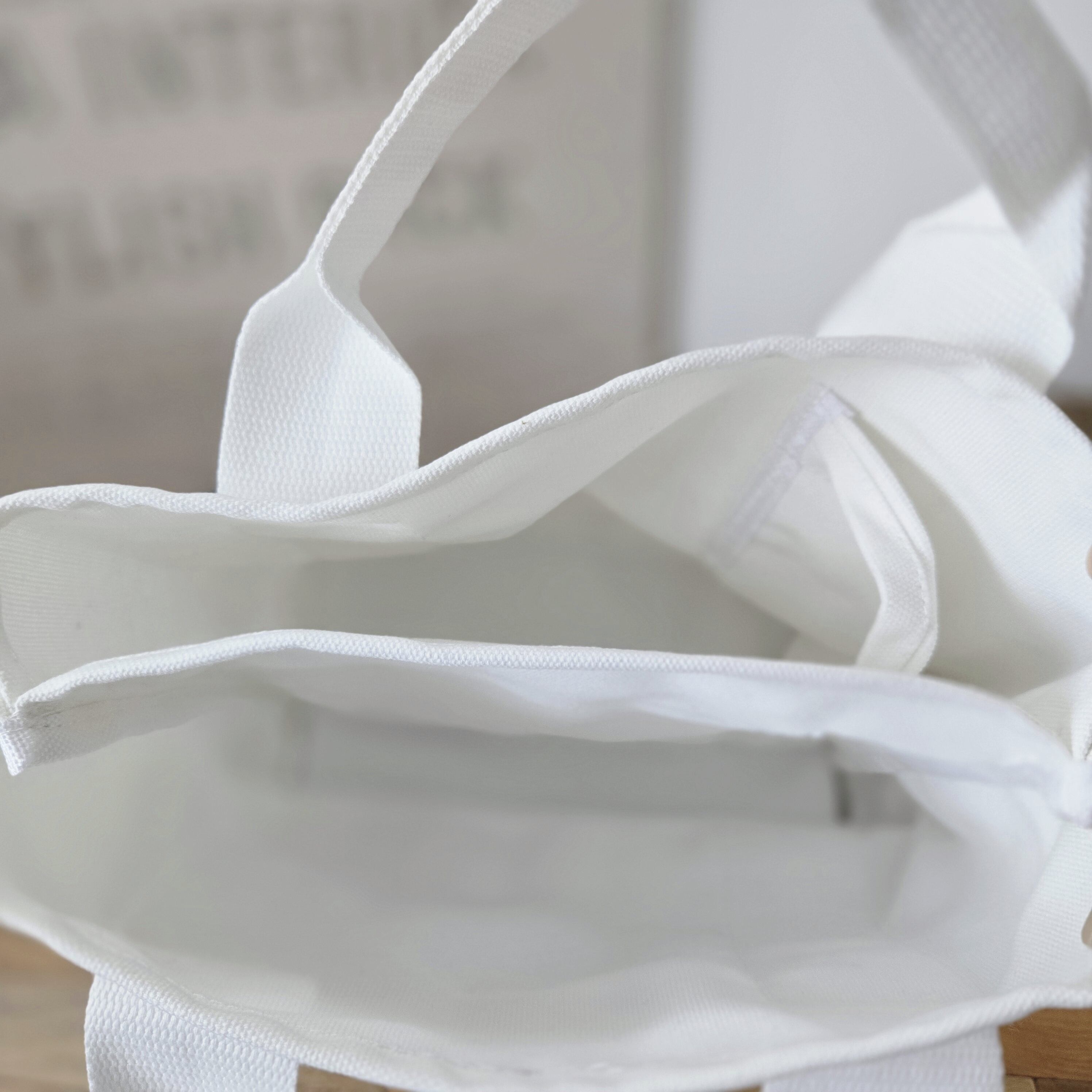ホワイトカラーのトートバックにインド刺繍リボンがアクセントに❣️